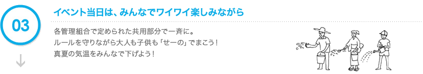 ※通路やエントランスなどは個人の所有物ではなく住民全員の共有スペースですので、打ち水をする場合は、管理組合の許可が必要になります。